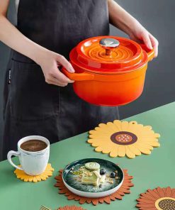Il n’y a rien de tel qu’un dessous de plat fantaisie pour ajouter une touche de gaieté à votre table. Sa forme inspirée du tournesol, symbole de chaleur et de dynamisme, transforme chaque repas en une véritable fête visuelle. L’alliance de sa beauté avec sa fonctionnalité en fait un accessoire essentiel pour créer une atmosphère conviviale pendant vos repas, que ce soit lors d’un dîner intime ou d’une soirée festive.