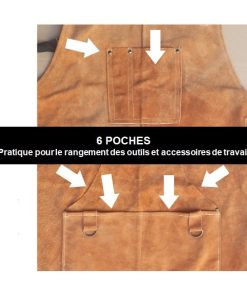 Très grand, ce tablier mesure plus d’1 mètre de long et couvre une bonne partie du corps pour une protection optimale. Réglable en largeur grâce à ses longues sangles croisées dans le dos, il offre un maintien et un confort inégalés. De plus, il est équipé de 6 poches pour transporter vos outils et accessoires de travail.